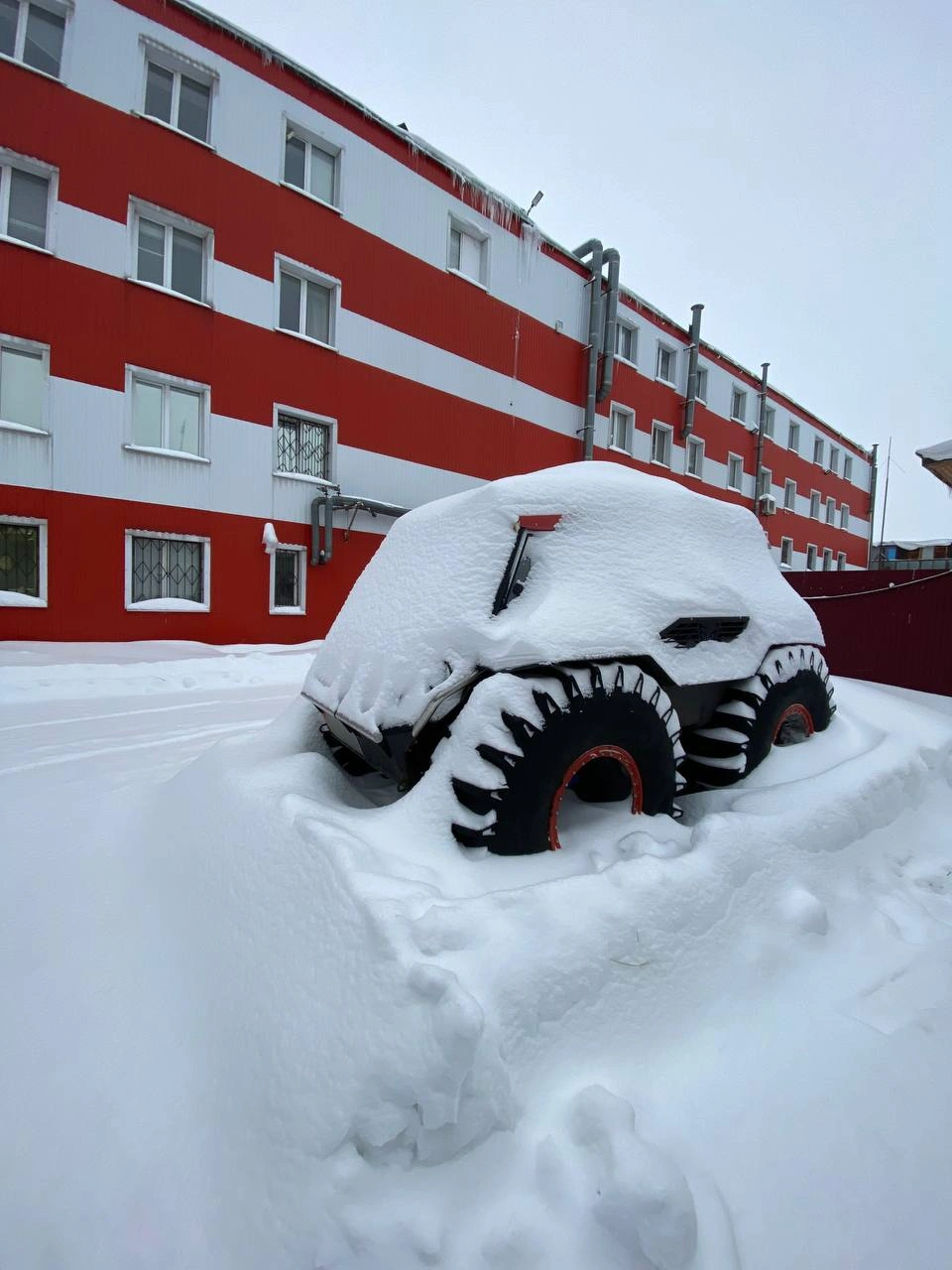 Из-за щедрых снегопадов наши могучие BigBo укутались в белоснежные шубы — превратились в настоящих снеговиков! ❄️